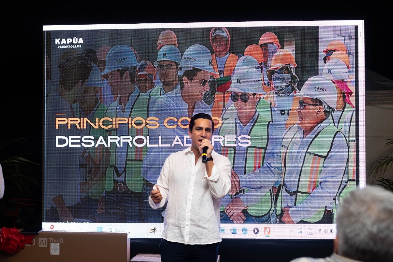 La velada comenzó en punto de las 7:00 pm con la participación de Rodrigo Guillermo, quien compartió la historia de Kapúa, sus proyectos anteriores y una visión general del mercado inmobiliario en Mérida.